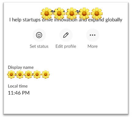 슬랙에서 특정 인물의 프로필을 누르면 그 사람의 정보를 볼 수 있습니다. 이 중 Local Time이라는 항목이 있는데, 이것을 통해 상대방의 현지 시간을 알 수 있어서 연락해도 괜찮은 시간인지 알 수 있습니다. 또한 이름 옆에 있는 아이콘에 옆의 이미지처럼 “Z” 표시가 있다면 알림이 꺼져있는 상태를 의미합니다. 슬랙의 기본 설정이 잠자는 시간 (9:00pm – 6:00am)으로 돼있기 때문에 해당 시간은 연락하기에 적당한 시간이 아니란 것으로 참고하면 좋습니다