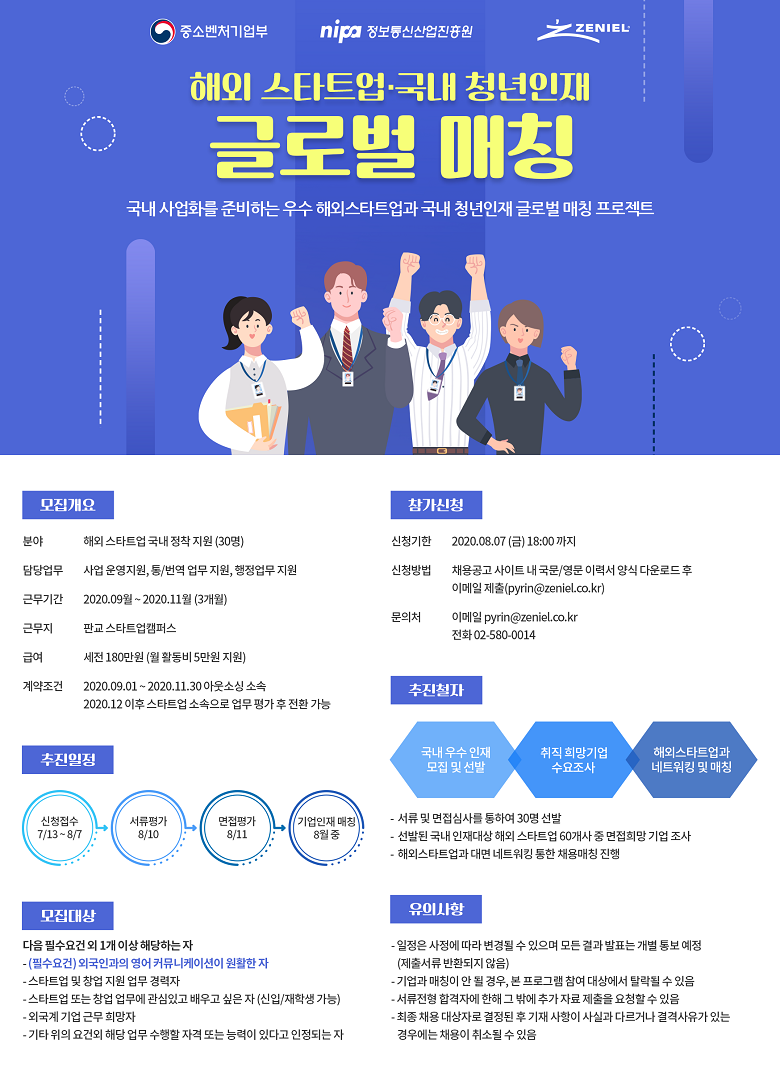 K-스타트업 그랜드 챌린지는 중소벤처기업부와 정보통신산업진흥원이 주관하는 프로그램으로 한국에 진출하고자 하는 세계 여러 기업들을 한국에 초청하여 한국 시장의 정착을 도와주는 프로그램입니다. 따라서 스타트업 또는 창업에 관심이 있거나 외국계 기업 근무를 희망하는 분들이 스타트업 생태계를 배우고 해외 기업 근무 환경을 접할 수 있는 좋은 기회입니다.